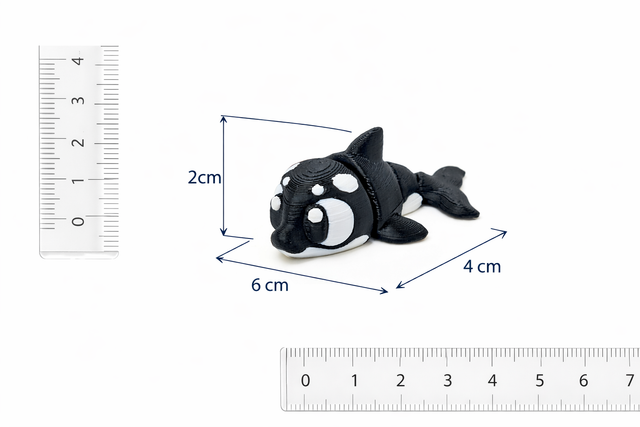 Flexi Orca – bewegliche 3D-gedruckte Dekofigur. Niedliches Orca im Comic-Stil, ca. 6 cm groß, ideal als Geschenk, Dekoration oder Sammlerfigur. Kein Spielzeug.